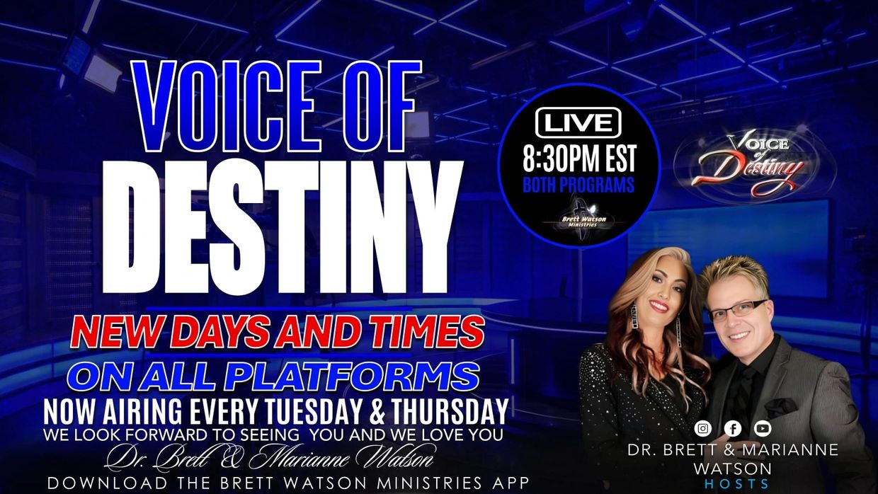 Watch "Voice of Destiny" Weekly - Tuesday & Thursday Nights At: 8:30 PM Eastern Time "LIVE" Here on the "Voice of Destiny" TV Network!
